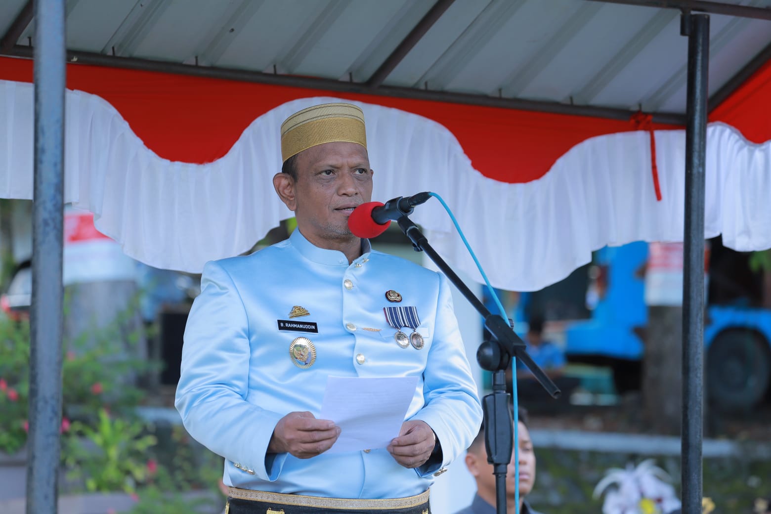 Wakil Bupati dr Baso Rahmanuddin menjadi inspektur dalam upacara tersebut. Ia membacakan pidato seragam Menteri Pemuda dan Olahraga Republik Indonesia.