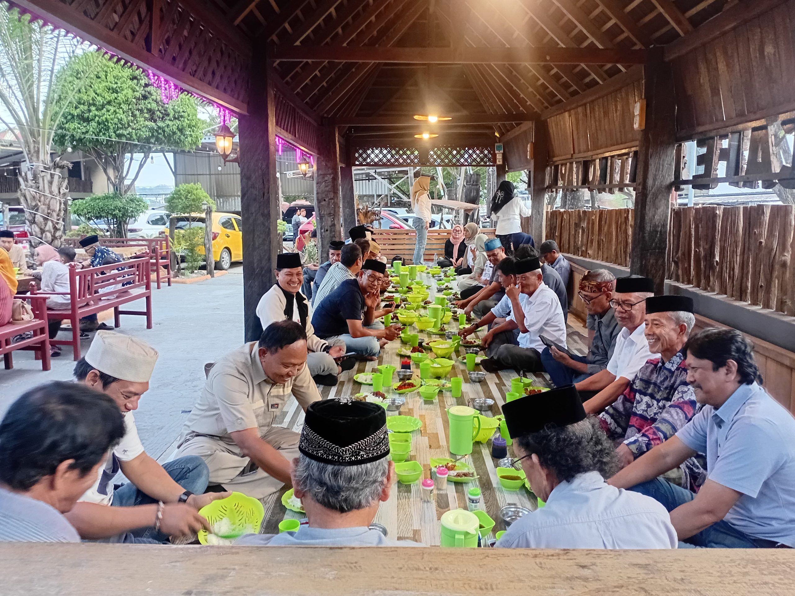 Menjelang waktu berbuka, suasana semakin terasa hangat. Para undangan tampak menikmati hidangan yang telah disiapkan sambil terus melanjutkan obrolan santai. Kegiatan kemudian ditutup dengan doa bersama sebagai ungkapan rasa syukur.