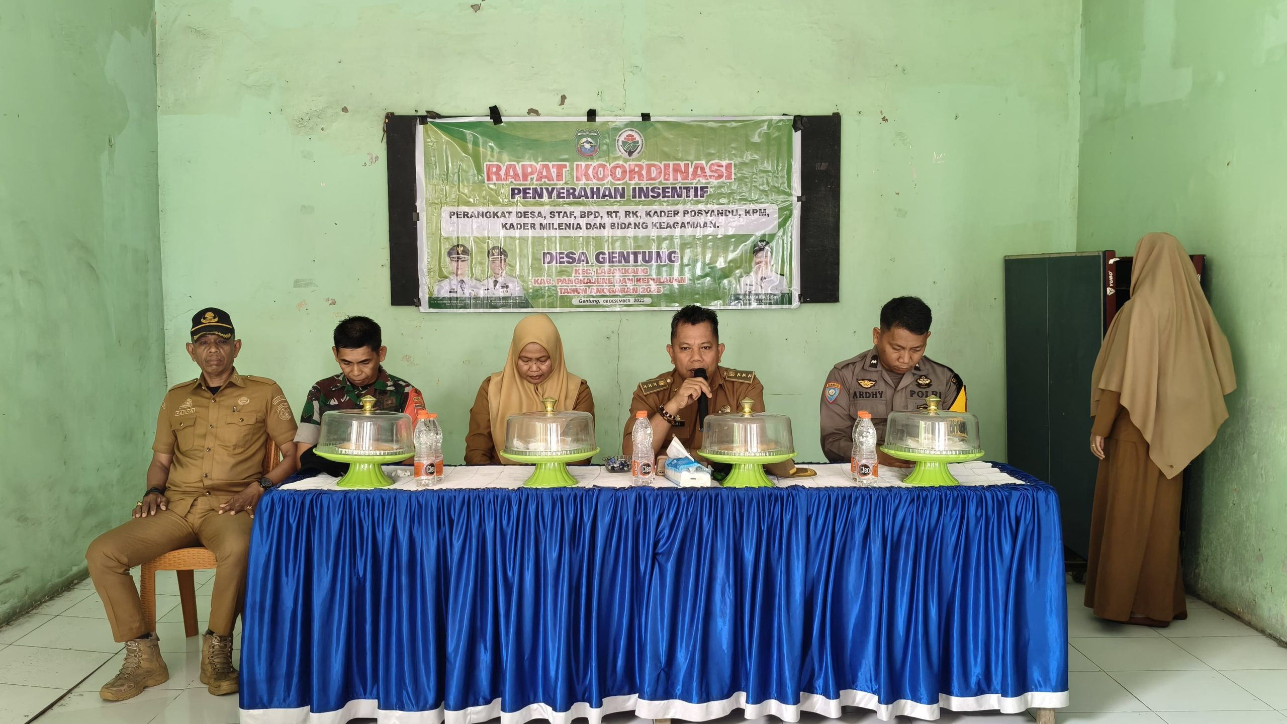 Pangkep, makassarpena.id  – Pemerintah Desa Gentung Kecamatan Labakkang Kabupaten Pangkajene dan Kepulauan menggelar rapat koordinasi penyerahan insentif yang dirangkaikan dengan penyerahan BLT tahun Anggaran 2025 di aula pertemuan Baruga sayang kantor desa pada Senin, 8 Desember 2025.