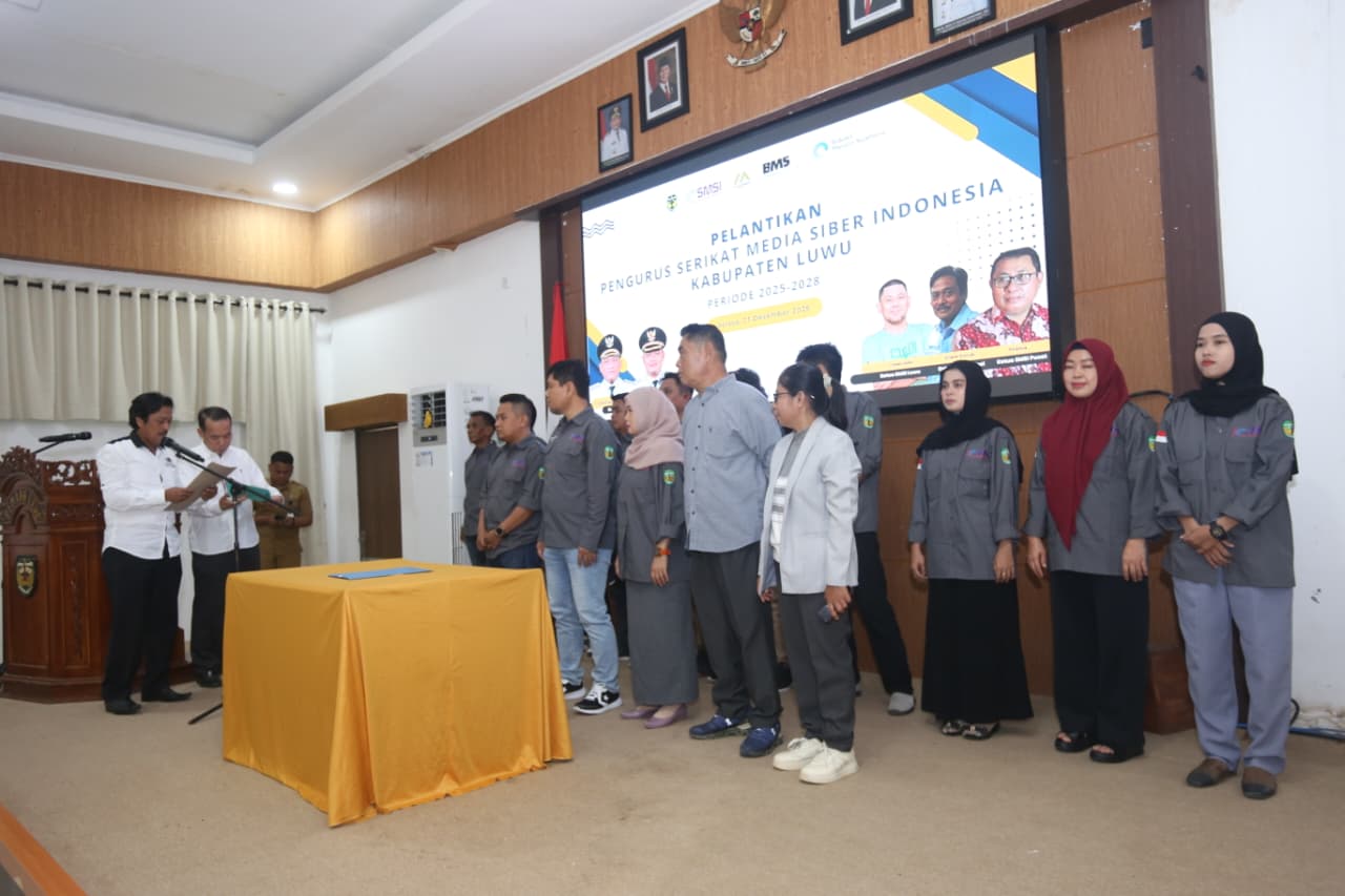 Pelantikan tersebut dihadiri unsur Forkopimda, pengurus SMSI Sulawesi Selatan, insan pers, serta jajaran Pemerintah Kabupaten Luwu.
