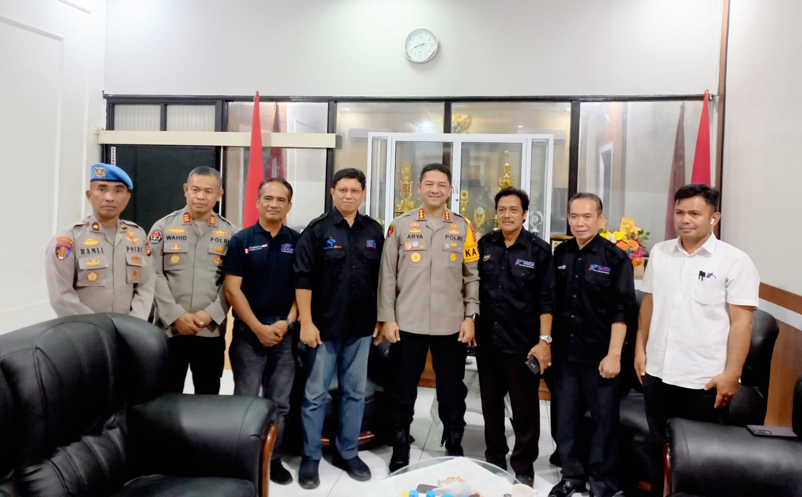 Makassar-makasarpena.id. Kapolrestabes Makassar, Kombes Pol Arya Perdana didampingi para pejabat utama (PJU) menerima kunjungan silaturahmi Plt Ketua Serikat Media Siber Indonesia (SMSI) Sulawesi Selatan, Anwar Sanusi bersama jajaran pengurus SMSI Sulsel. Pertemuan berlangsung di ruang tamu Polrestabes Makassar, Jalan Ahmad Yani, Rabu (27/8/2025).