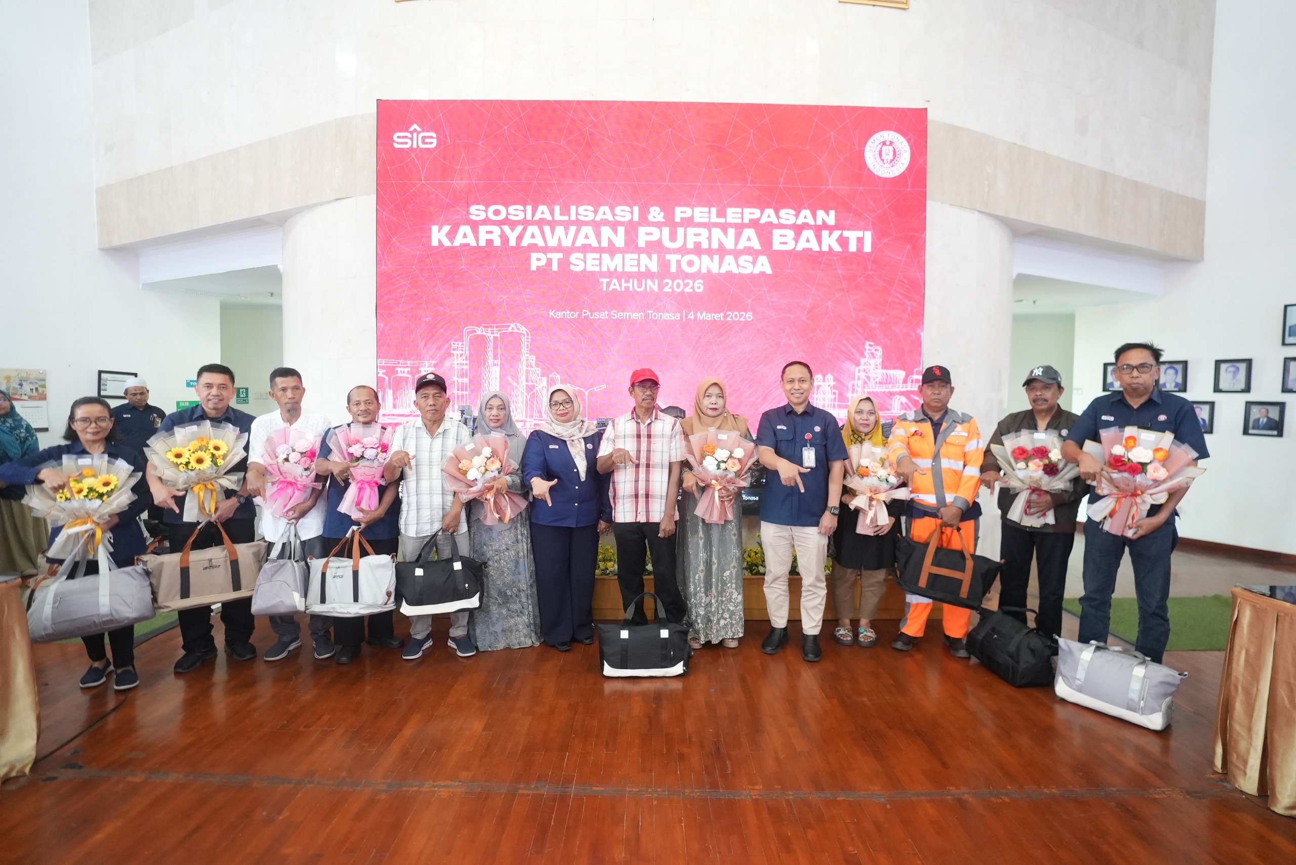 Kegiatan tersebut dihadiri jajaran Manajemen yakni Direktur Keuangan PT Semen Tonasa, Sulaiha Muhyiddin, GM SDM dan GRC Muh. Akhdharisa, SM Operasional SDM, Widya Kurniasari Rahim dan Staf, bersama para karyawan yang memasuki masa pensiun, yang mana pada periode Februari hingga Desember 2026, tercatat sebanyak 60 karyawan resmi memasuki masa purna bakti setelah bertahun-tahun mengabdikan diri dan memberikan kontribusi dalam perjalanan perusahaan.