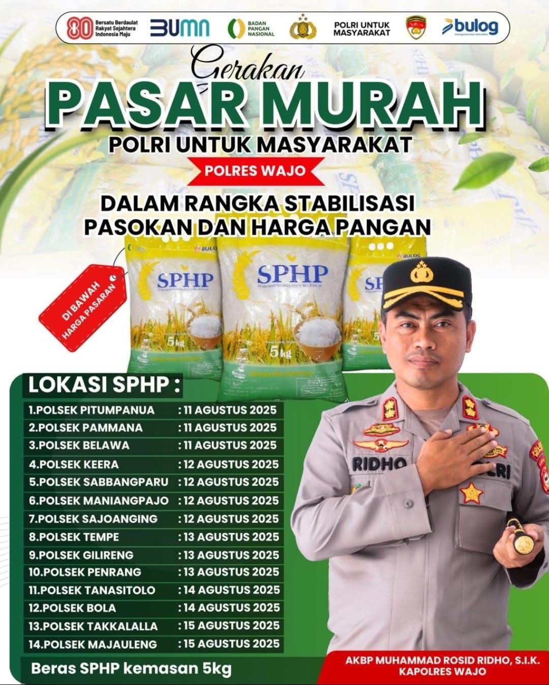 Kapolres Wajo, AKBP Muhammad Rosid Rhido, mengatakan, bahwa pasar murah ini merupakan salah satu wujud nyata komitmen Polri dalam meningkatkan kesejahteraan rakyat.