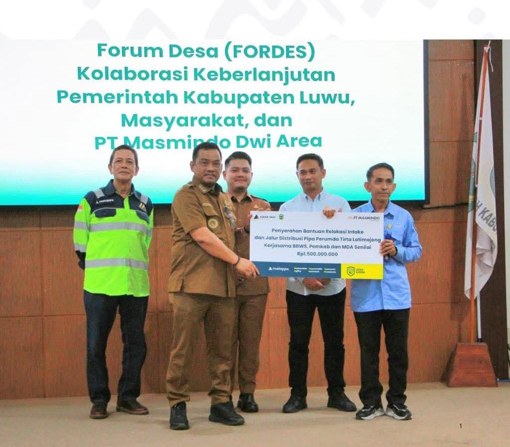Pada kesempatan tersebut turut dilakukan penyerahan secara simbolis bantuan relokasi intake dan jalur distribusi pipa PT Tirta Latimojong melalui kerja sama Balai Besar Wilayah Sungai, Pemerintah Kabupaten Luwu dan PT Masmindo Dwi Area.