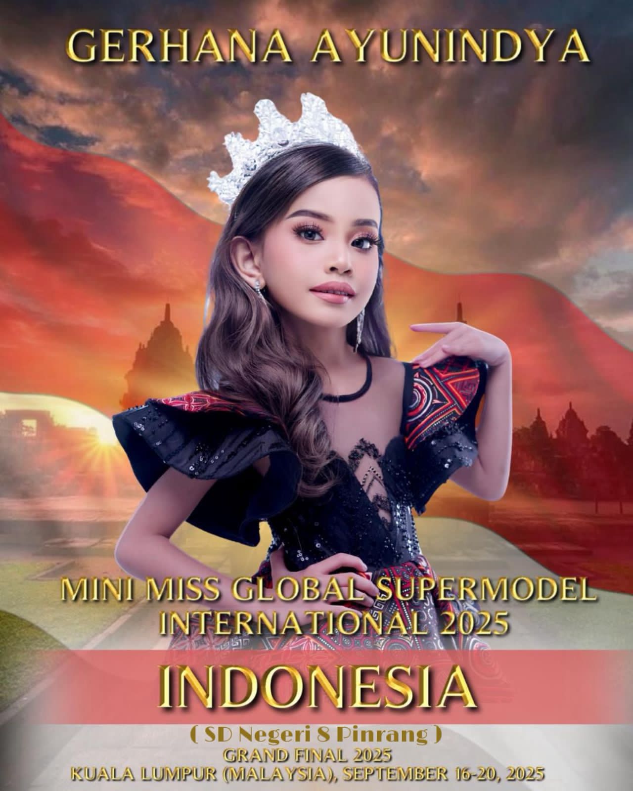 Pinrang-makassarpena.id. Gerhana Ayunindya, siswi kelas II Emmi Saelan dari SD Negeri 8 Pinrang, akan mengharumkan nama Indonesia di ajang Mini Miss Global Supermodel International 2025. Kompetisi bergengsi ini akan diselenggarakan di Kuala Lumpur, Malaysia, pada tanggal 16–20 September 2025.