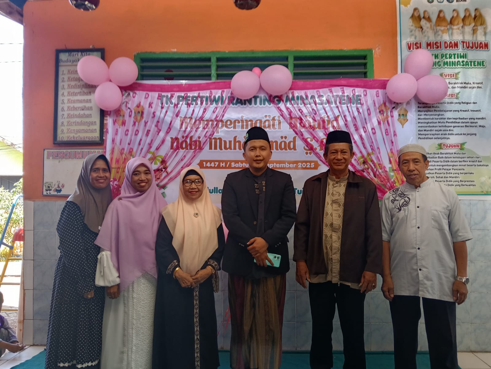 Pangkep-makassarpena.id. Taman Kanak-kanak (TK) Pertiwi Ranting Minasatene Kabupaten Pangkajene dan Kepulauan mengadakan peringatan Maulid Nabi Muhammad Shallallahu Alaihi Wasallam 1447 Hijriyah berlangsung di halaman TK jalan Cendana Kelurahan Minasatene Kecamatan Minasatene pada Sabtu, 27 September 2025.